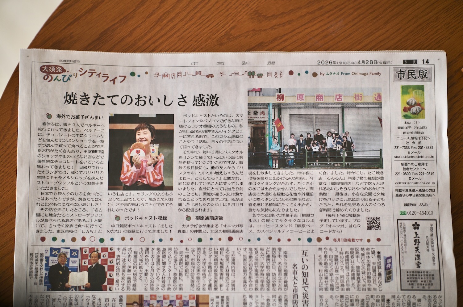 このコラムは名古屋市内で配布・販売されてる中日新聞に載ってますので、