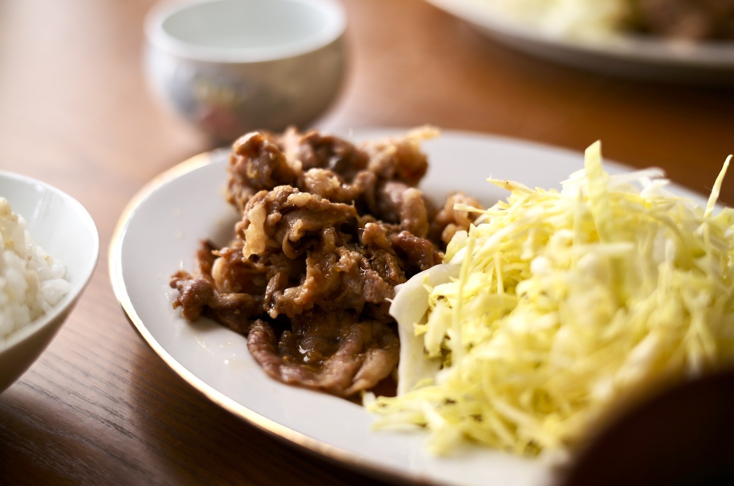 お昼ごはんは豚の生姜焼き。