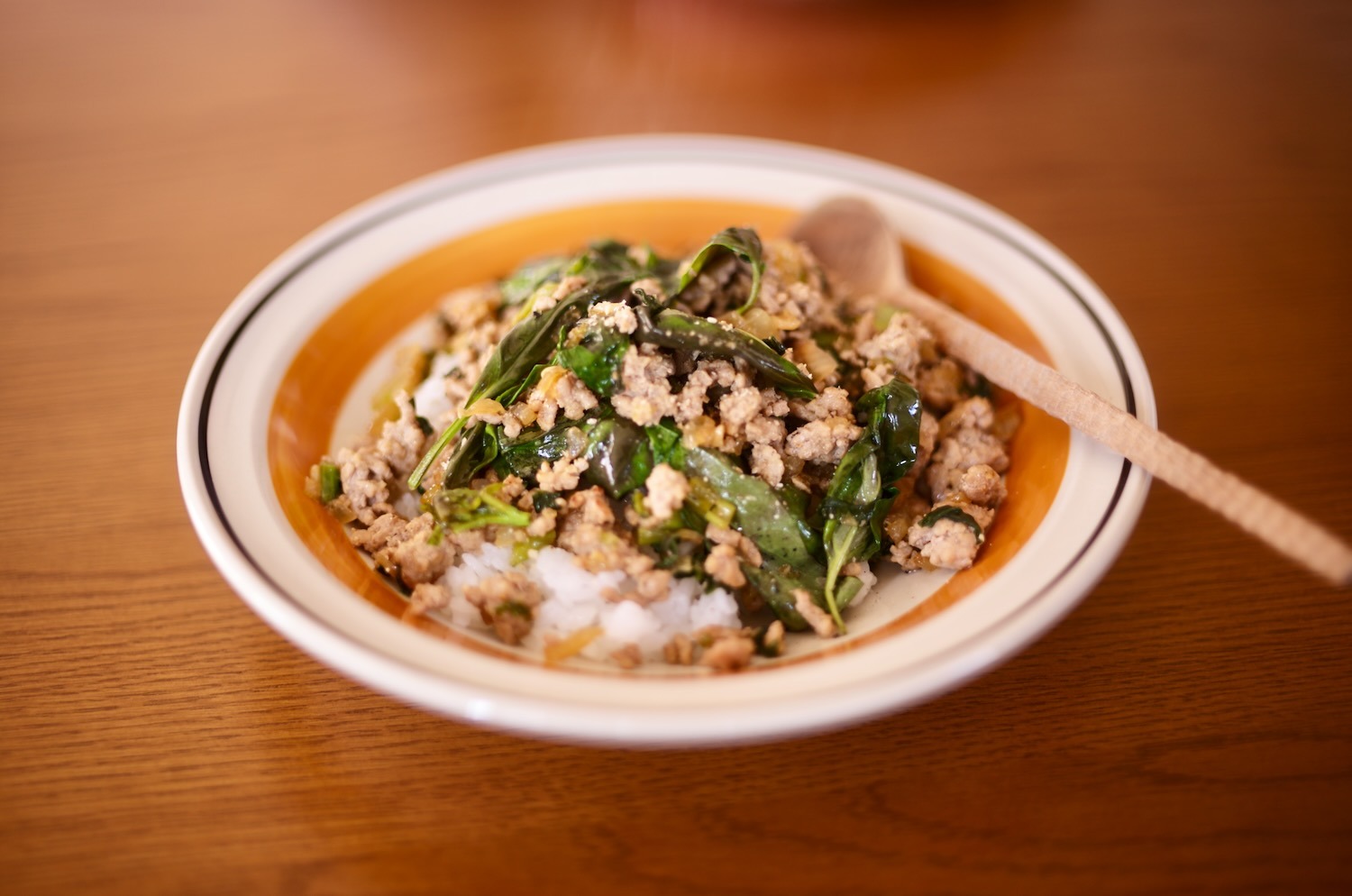 お昼ごはんはガパオライス。