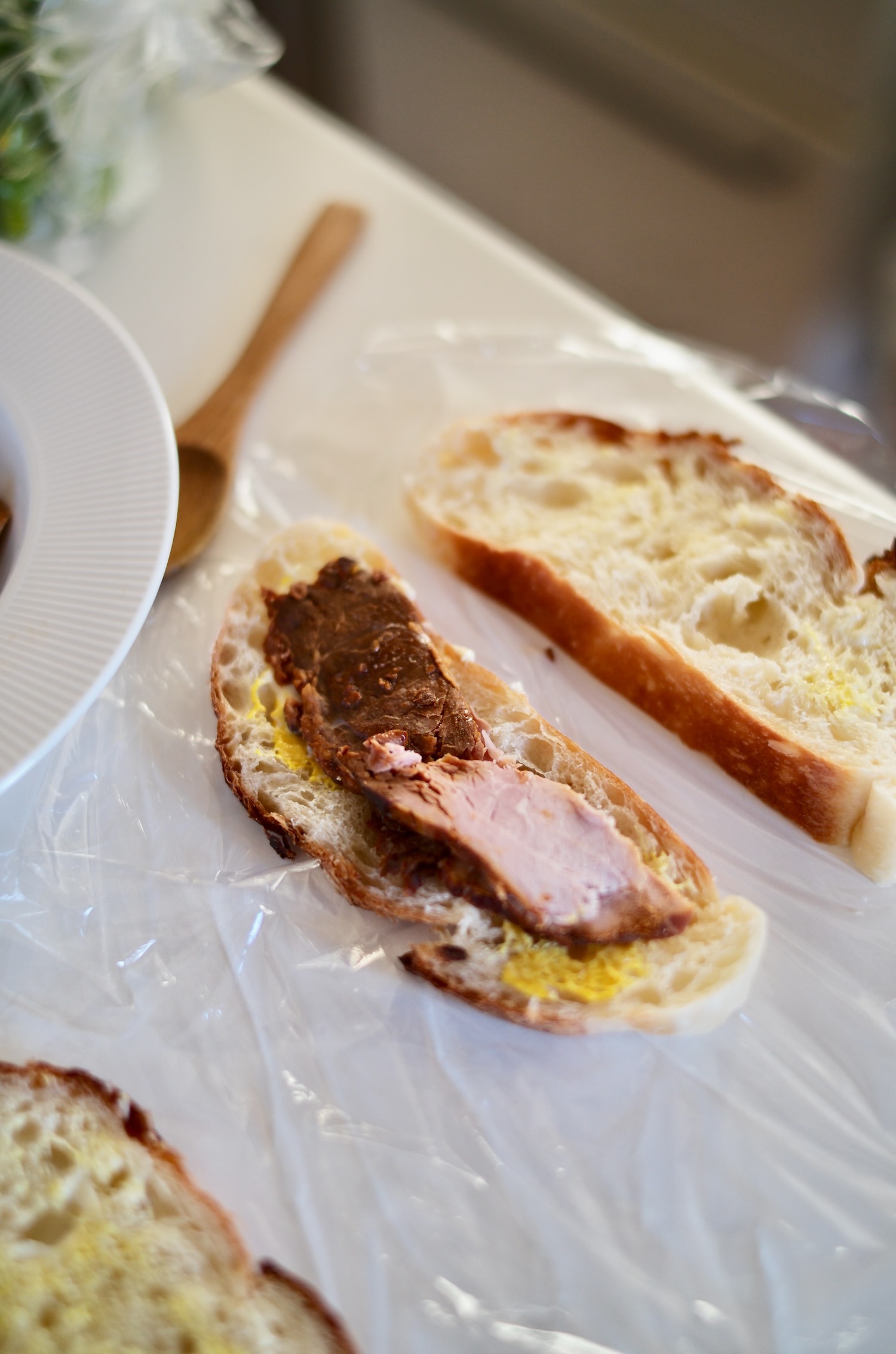奥様お手製のカンパーニュでサンドイッチを作りました。