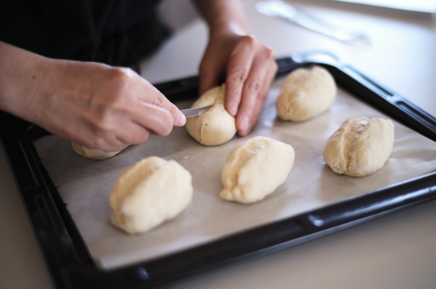 帰ってきてから奥様はミニフランスパン作り。