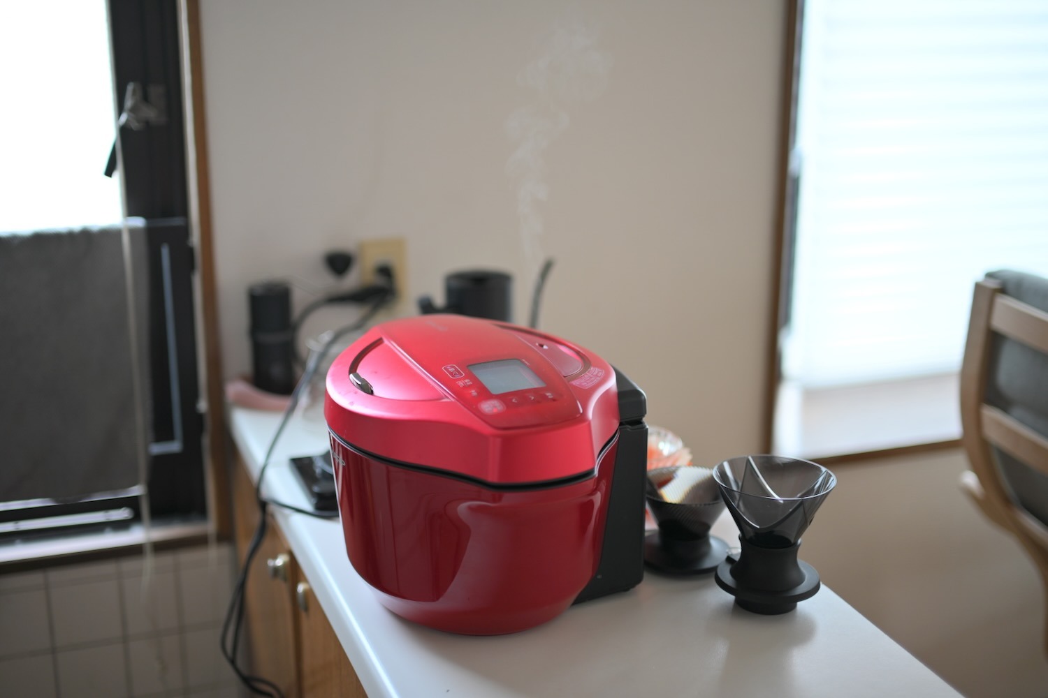 料理は機械に任せて人間はコーヒー休憩です。