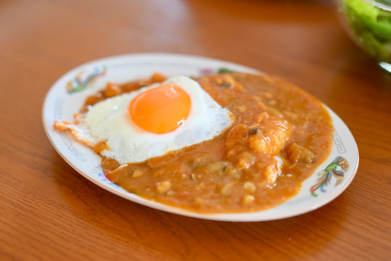 お昼ごはんは昨日の余りのカレーwith目玉焼き。