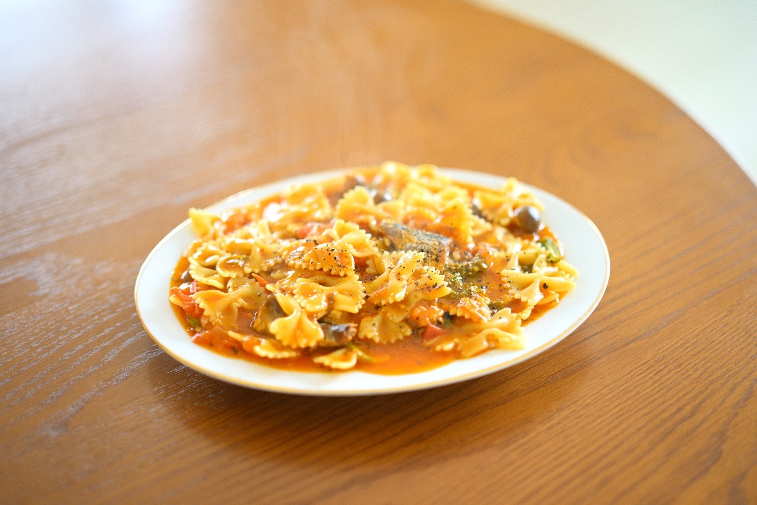 お昼ごはんにイワシとトマトのファルファッレを作りました。