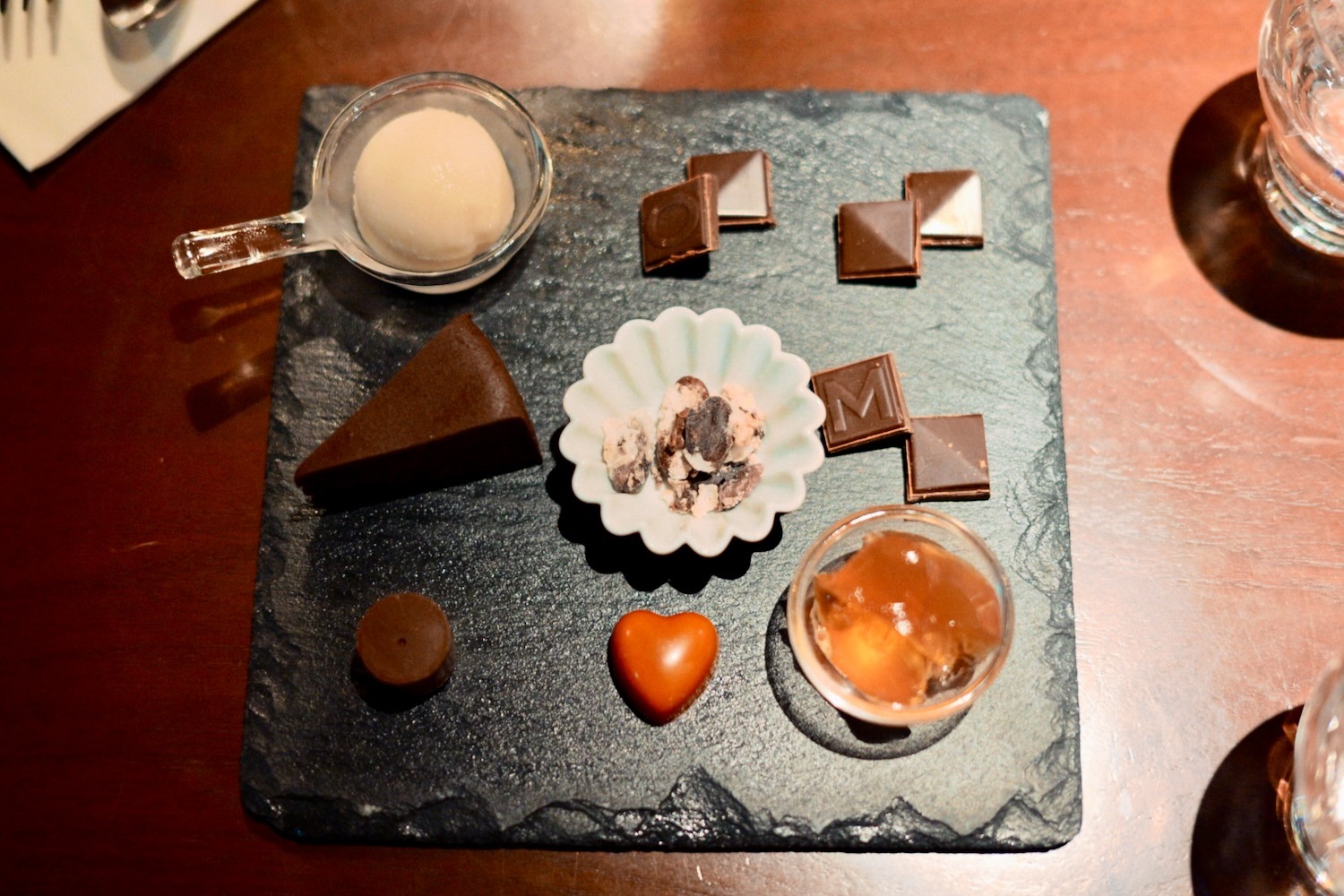 カカオを9種類のいろんな形で楽しむという、なかなか楽しいメニュー。